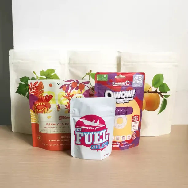 The pouches underdo printing procedures for brand visuals, logos, product information, and legal compliance labeling.