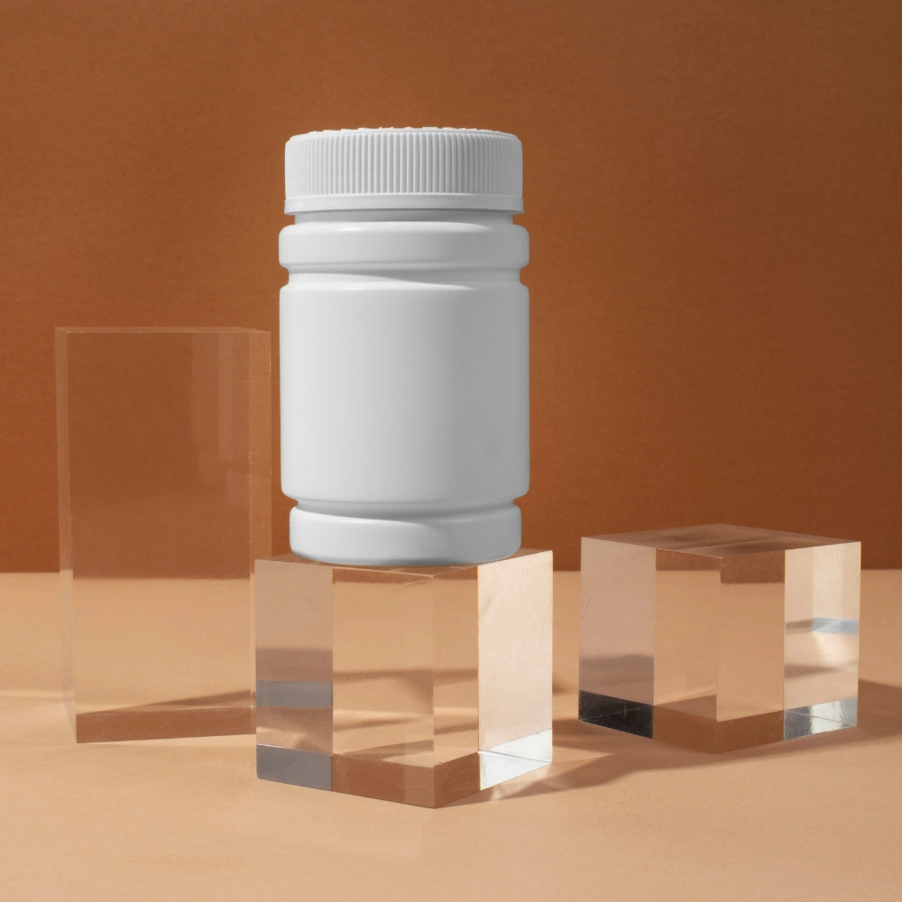 HDPE is one of the most commonly used plastics in pharmaceutical packaging. It is lightweight, moisture-resistant, and chemically inert making it ideal for both solid and semi-solid medications and supplements.