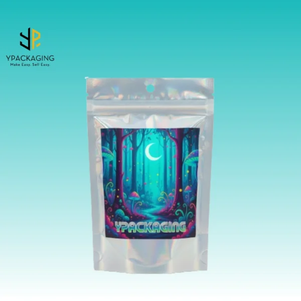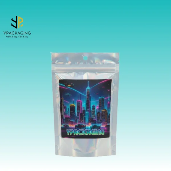 holographic mylar bags from Ypackaging are very elegant, durable and keep food fresh for a long time. The zipper closes easily and opens easily, so nothing leaks. The shiny holographic finish makes them attractive. You can use them for coffee, snacks, powders, or even liquids. They come in different sizes and you can even add your own logo and you can customize it according to yourself. These bags are practical, reusable, and look great. At Ypackaging we make the Best Quality and premium Packaging and with your customized designs.