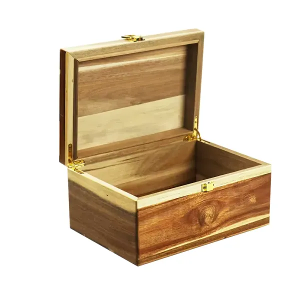 Showcase your products in antique and sophisticated custom wooden boxes with hinges by YPackaging. These hinged wooden boxes offer a versatile and elegant packaging solution for various items like jewelry, watches, spices, tea, cosmetics, cutlery, etc. The box features a sturdy construction and a hinged lid for easy access and can be customized in size, shape, design, and finishes for a premium look. Perfect for retail, gifting, or home use, hinged wooden boxes reflect quality and durability. Get an instant quote today!